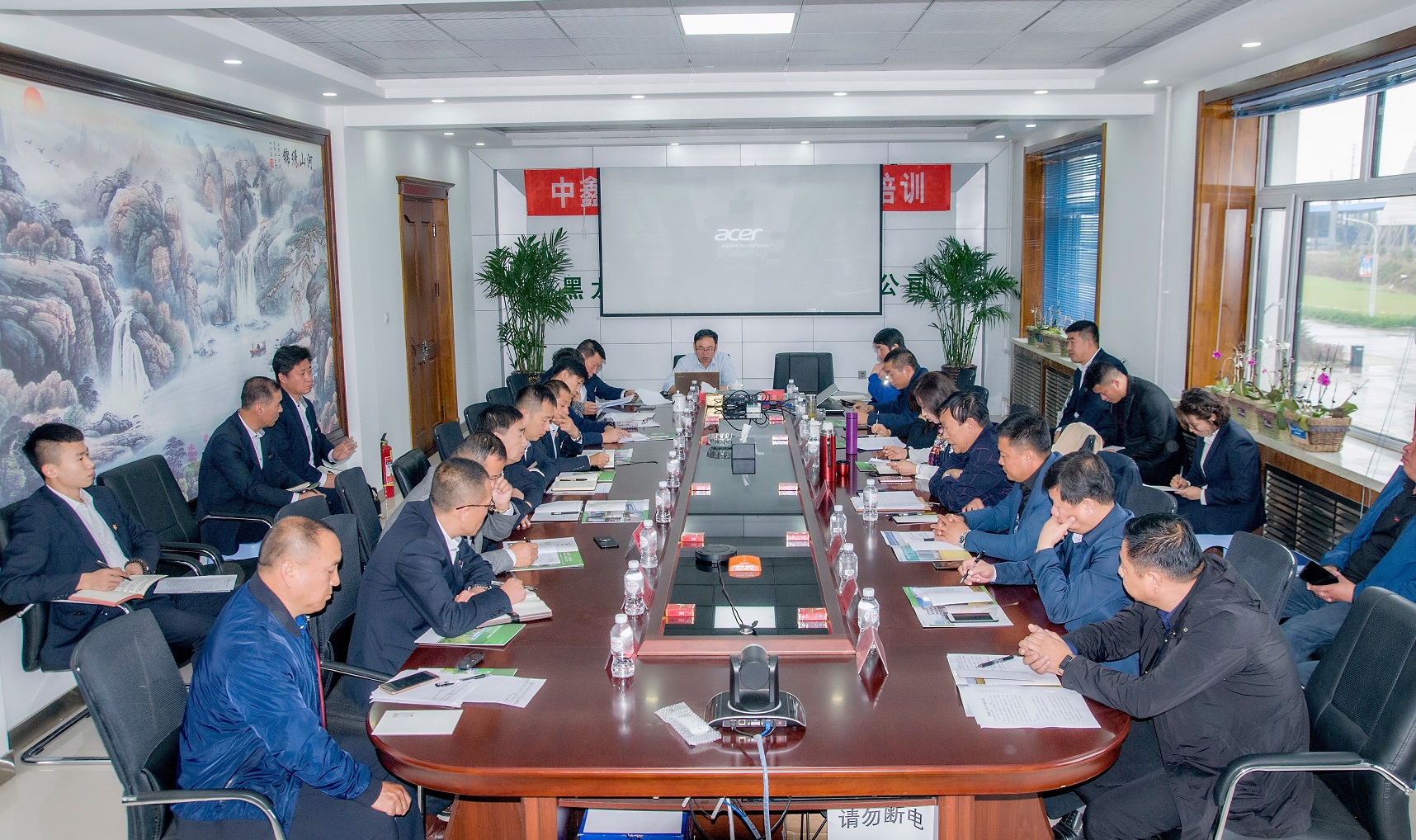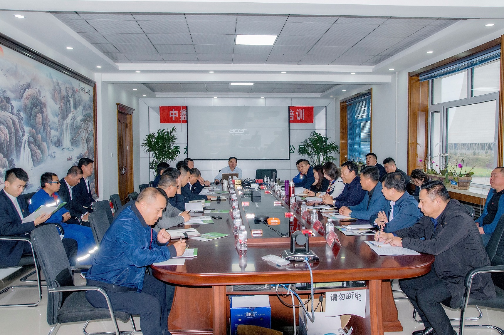 金九銀十,譽滿龍江,糧谷飄香入庫,東北寒潮來襲,凝聚人心聚力,溫暖萬戶千家!2018年10月10日,慶翔集團(tuán)10月份中層以上干部工作會議在黑龍江中鑫熱電有限責(zé)任公司勝利召開,集團(tuán)公司總經(jīng)理王國茂和高管成員及慶翔熱電、中鑫熱電、肇源熱電、慶安糧油各子公司主要領(lǐng)導(dǎo)和部門負(fù)責(zé)人共30人參加了會議。本次會議是在東北采暖開始和40MW新建機組并網(wǎng)發(fā)電前沖刺的關(guān)鍵節(jié)點上召開的,是溝通融合各子公司、凝聚集團(tuán)干部職工的關(guān)鍵盛會。